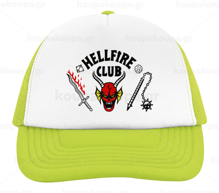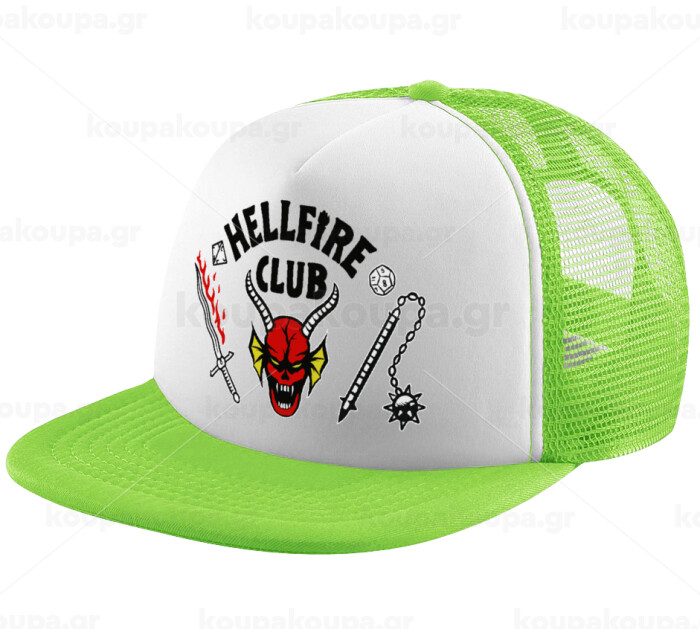 Hellfire CLub, Stranger Things, Child's Soft Trucker Hat with Green/White Mesh (POLYESTER, CHILDREN'S, ONE SIZE)