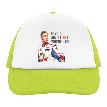 If You Ain't First You're Last Ricky Bobby, Talladega Nights, Child's Soft Trucker Hat with Green/White Mesh (POLYESTER, CHILDREN'S, ONE SIZE)