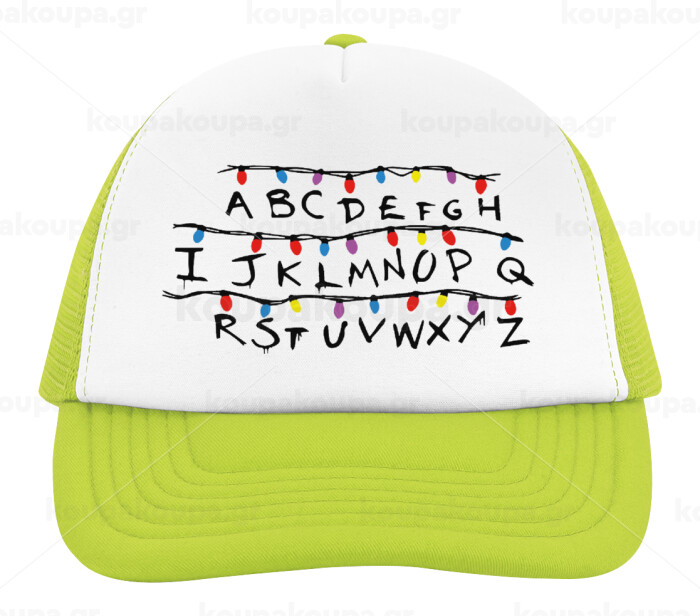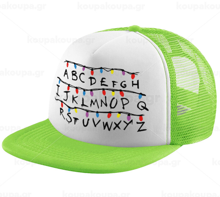 Stranger Things ABC, Child's Soft Trucker Hat with Green/White Mesh (POLYESTER, CHILDREN'S, ONE SIZE)