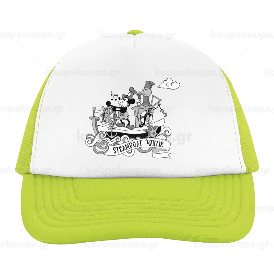 Mickey steamboat, Child's Soft Trucker Hat with Green/White Mesh (POLYESTER, CHILDREN'S, ONE SIZE)