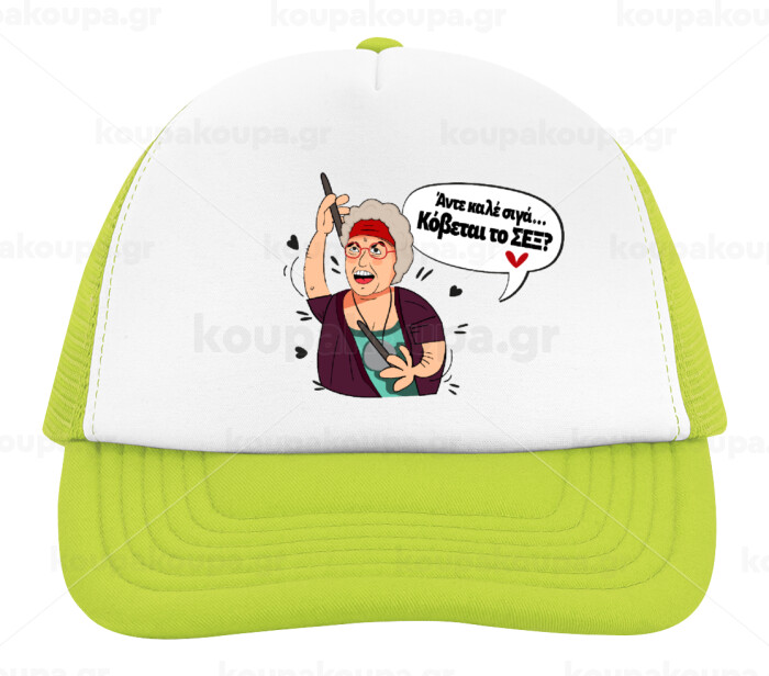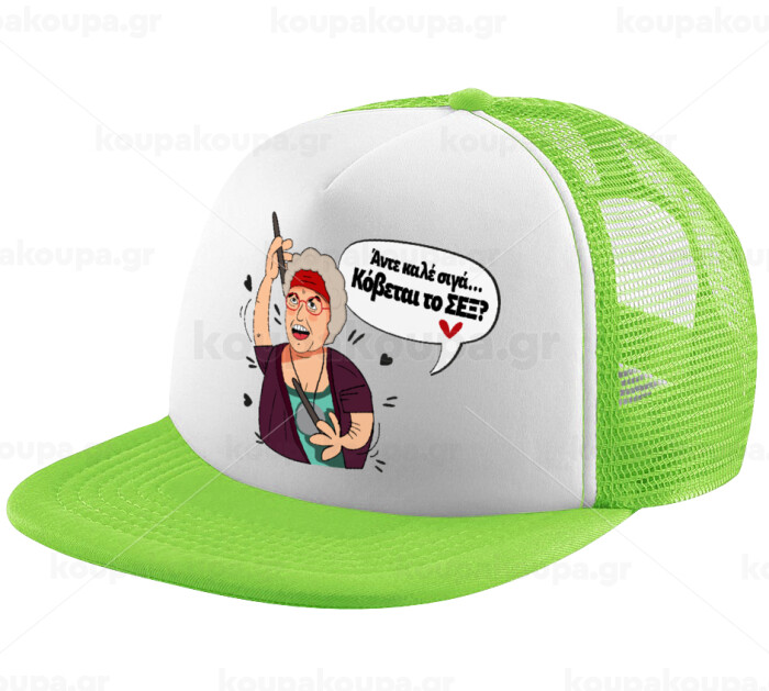 Αντε καλέ, σιγά, κόβεται το σέξ ;, Child's Soft Trucker Hat with Green/White Mesh (POLYESTER, CHILDREN'S, ONE SIZE)