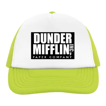 Dunder Mifflin, Inc Paper Company, Child's Soft Trucker Hat with Green/White Mesh (POLYESTER, CHILDREN'S, ONE SIZE)