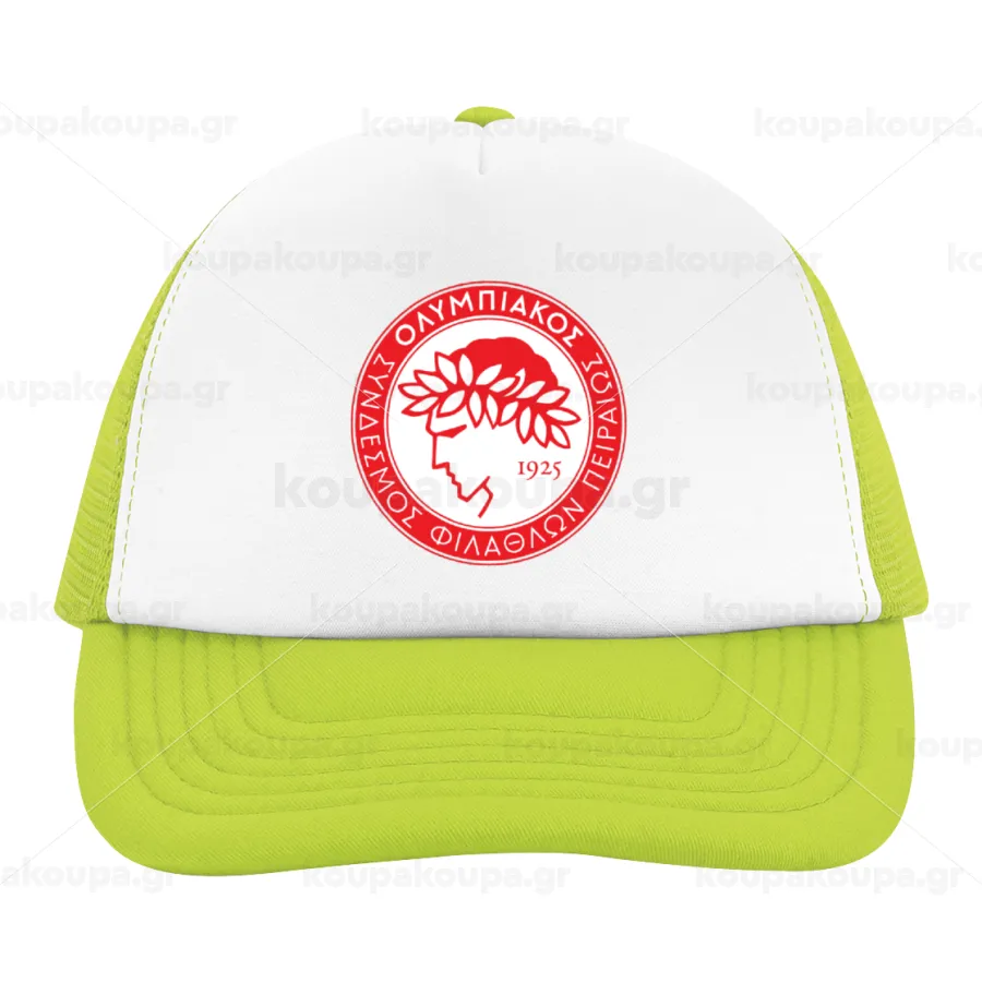 Ολυμπιακός, Child's Soft Trucker Hat with Green/White Mesh (POLYESTER, CHILDREN'S, ONE SIZE)