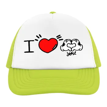 comics hands love, Child's Soft Trucker Hat with Green/White Mesh (POLYESTER, CHILDREN'S, ONE SIZE)