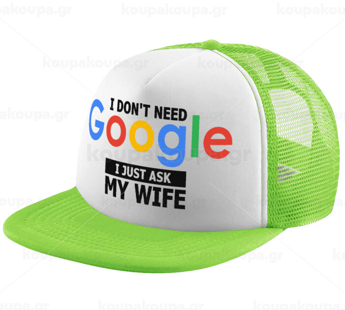 I don't need Google, just ask my WIFE, Child's Soft Trucker Hat with Green/White Mesh (POLYESTER, CHILDREN'S, ONE SIZE)