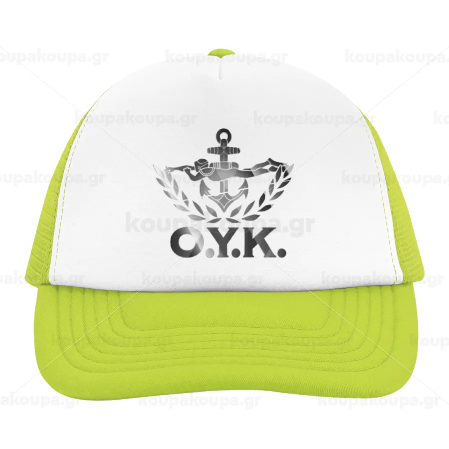 Ο.Υ.Κ., Child's Soft Trucker Hat with Green/White Mesh (POLYESTER, CHILDREN'S, ONE SIZE)