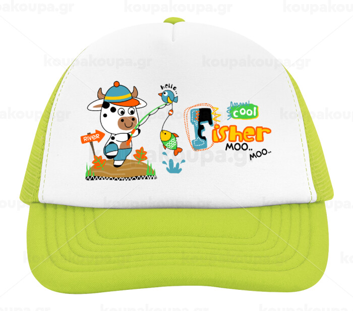 Kids Fisherman, Child's Soft Trucker Hat with Green/White Mesh (POLYESTER, CHILDREN'S, ONE SIZE)