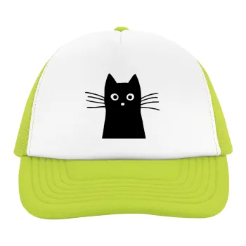 Black Cat, Child's Soft Trucker Hat with Green/White Mesh (POLYESTER, CHILDREN'S, ONE SIZE)