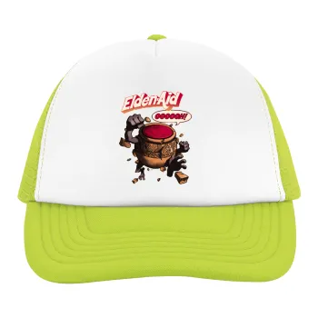 UNISEXONE SIZEFor ages 4-14 yearsFive-panel Soft Trucker hat with meshComposition: 100% Polyester, 160g/m²Mesh at the backSoft forehead with 5mm sponge on the foreheadCurved visor with 6 stitchesAdjustable plastic closure