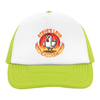 Steve's Lava Chicken, Child's Soft Trucker Hat with Green/White Mesh (POLYESTER, CHILDREN'S, ONE SIZE)