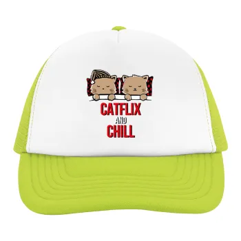 Catflix and Chill, Child's Soft Trucker Hat with Green/White Mesh (POLYESTER, CHILDREN'S, ONE SIZE)