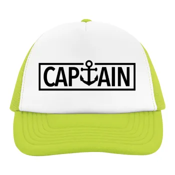 CAPTAIN, Child's Soft Trucker Hat with Green/White Mesh (POLYESTER, CHILDREN'S, ONE SIZE)