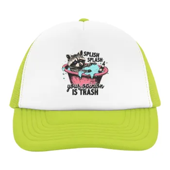 Splish splash your opinion is trash, Child's Soft Trucker Hat with Green/White Mesh (POLYESTER, CHILDREN'S, ONE SIZE)
