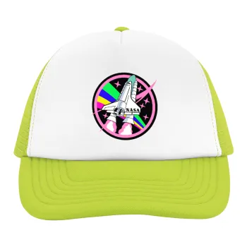 NASA pink, Child's Soft Trucker Hat with Green/White Mesh (POLYESTER, CHILDREN'S, ONE SIZE)