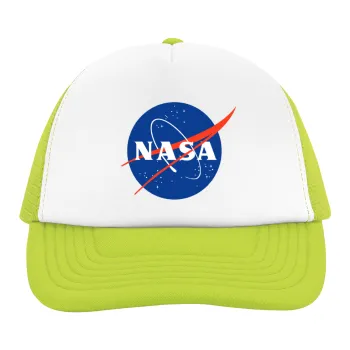 Nasa, Child's Soft Trucker Hat with Green/White Mesh (POLYESTER, CHILDREN'S, ONE SIZE)