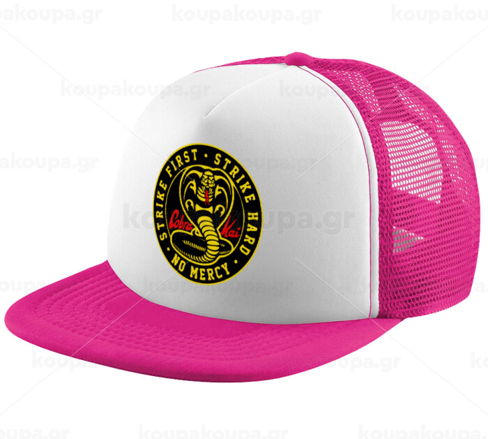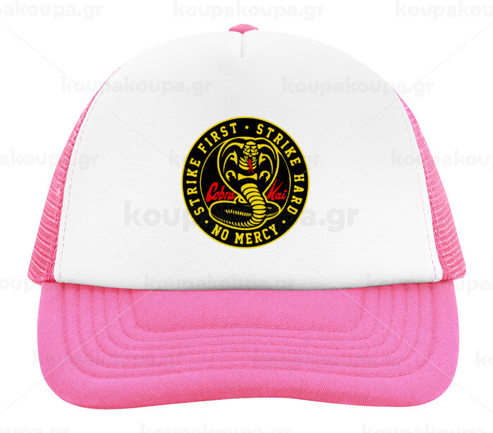 cobra kai strike first dojo, Child's Soft Trucker Hat with Pink/White Mesh (POLYESTER, CHILD, ONE SIZE)