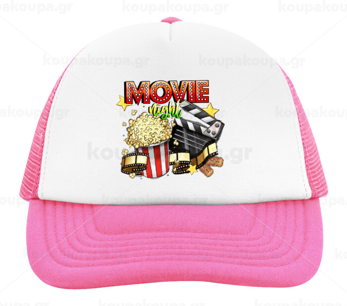 Movie night, Child's Soft Trucker Hat with Pink/White Mesh (POLYESTER, CHILD, ONE SIZE)