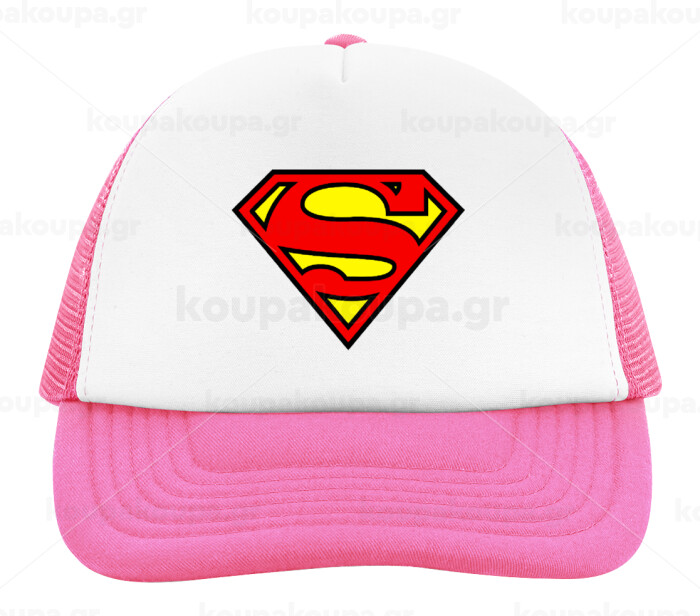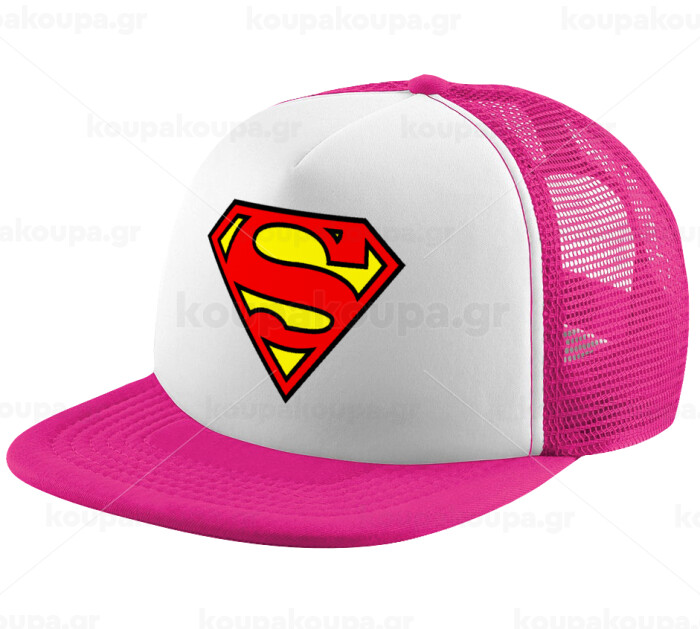 Superman vintage, Child's Soft Trucker Hat with Pink/White Mesh (POLYESTER, CHILD, ONE SIZE)