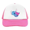Lilo & Stitch hugs and hearts, Child's Soft Trucker Hat with Pink/White Mesh (POLYESTER, CHILD, ONE SIZE)
