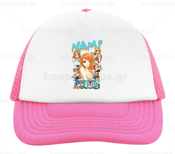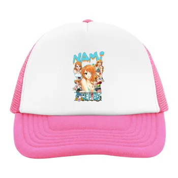 Nami One Piece, Child's Soft Trucker Hat with Pink/White Mesh (POLYESTER, CHILD, ONE SIZE)