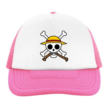 Onepiece skull, Child's Soft Trucker Hat with Pink/White Mesh (POLYESTER, CHILD, ONE SIZE)