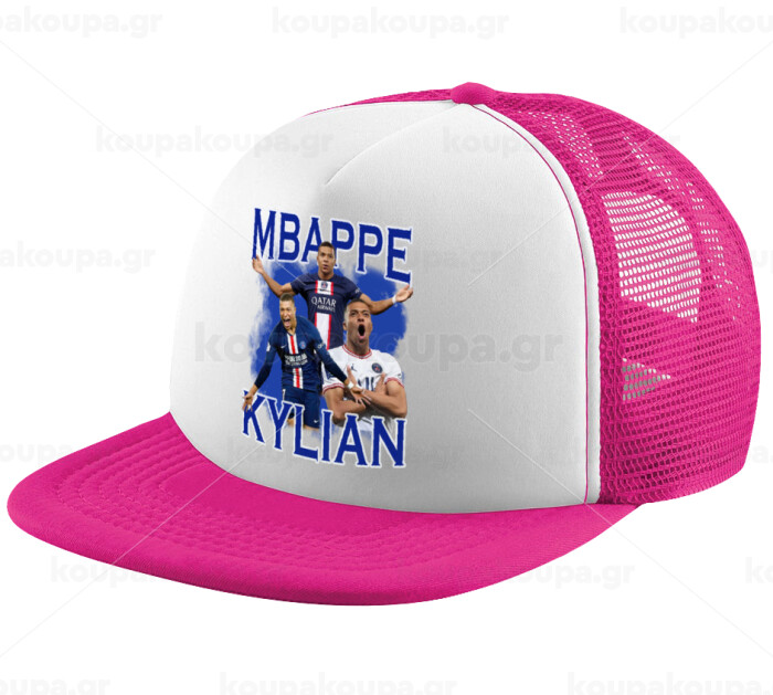 Kylian Mbappé, Child's Soft Trucker Hat with Pink/White Mesh (POLYESTER, CHILD, ONE SIZE)