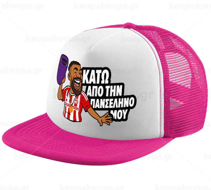 Ροντινέι, "ΚΑΤΩ ΑΠΟ ΤΗΝ ΠΑΝΣΕΛΗΝΟ ΜΟΥ!", Child's Soft Trucker Hat with Pink/White Mesh (POLYESTER, CHILD, ONE SIZE)