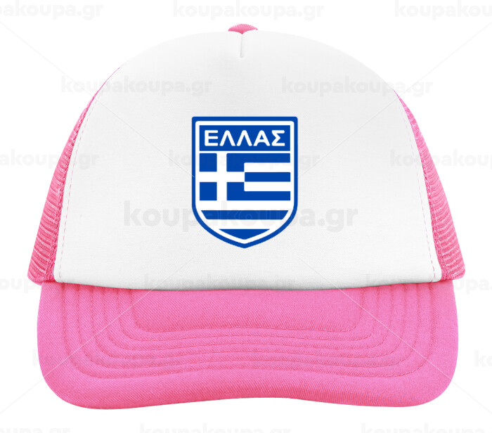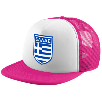 Hellas, Child's Soft Trucker Hat with Pink/White Mesh (POLYESTER, CHILD, ONE SIZE)