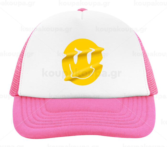 Smile avatar distrorted, Child's Soft Trucker Hat with Pink/White Mesh (POLYESTER, CHILD, ONE SIZE)