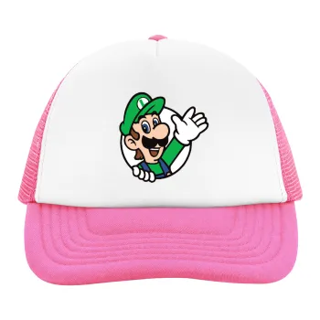 Super mario Luigi win, Child's Soft Trucker Hat with Pink/White Mesh (POLYESTER, CHILD, ONE SIZE)