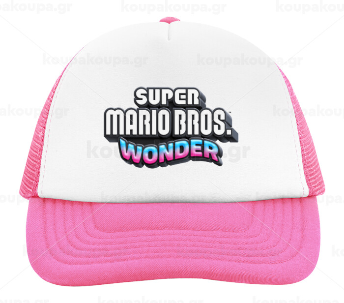 Super mario wonder, Child's Soft Trucker Hat with Pink/White Mesh (POLYESTER, CHILD, ONE SIZE)