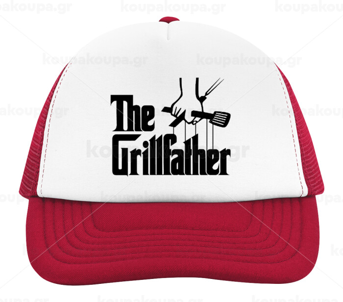 The Grill Father, Children's Soft Trucker Hat with Red/White Mesh (POLYESTER, CHILDREN'S, ONE SIZE)