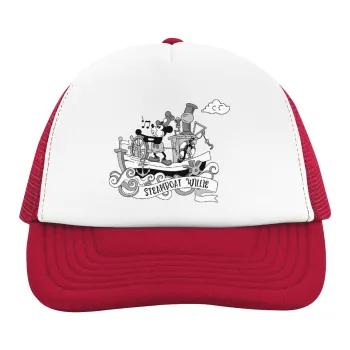 Mickey steamboat, Children's Soft Trucker Hat with Red/White Mesh (POLYESTER, CHILDREN'S, ONE SIZE)