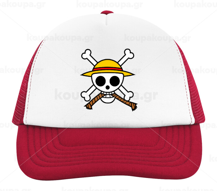 Onepiece skull, Children's Soft Trucker Hat with Red/White Mesh (POLYESTER, CHILDREN'S, ONE SIZE)