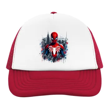 Spiderman City, Children's Soft Trucker Hat with Red/White Mesh (POLYESTER, CHILDREN'S, ONE SIZE)