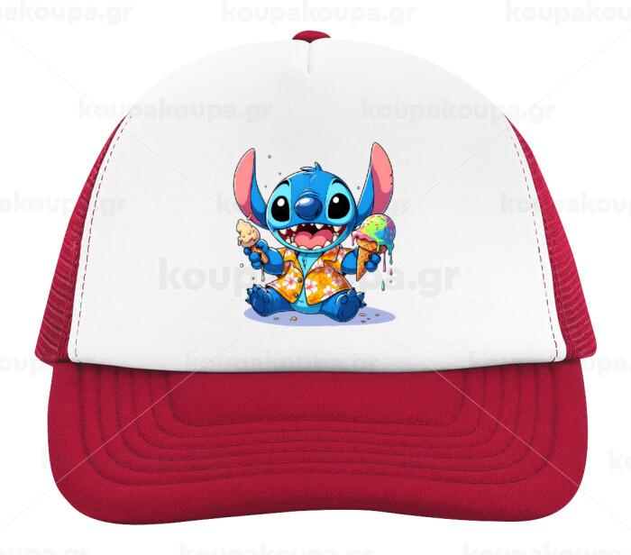 Stitch Ice cream, Children's Soft Trucker Hat with Red/White Mesh (POLYESTER, CHILDREN'S, ONE SIZE)