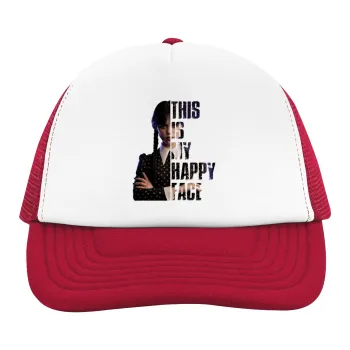 Wednesday, This is my happy face, Children's Soft Trucker Hat with Red/White Mesh (POLYESTER, CHILDREN'S, ONE SIZE)