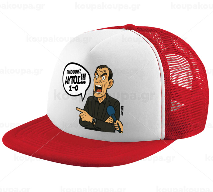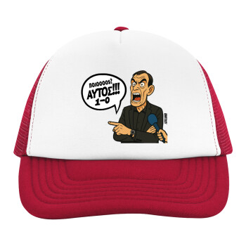 Μπαρτζό, Ποιος? Αυτός!!! 1-0, Children's Soft Trucker Hat with Red/White Mesh (POLYESTER, CHILDREN'S, ONE SIZE)