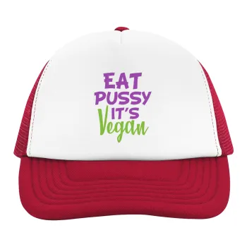 EAT pussy it's vegan, Children's Soft Trucker Hat with Red/White Mesh (POLYESTER, CHILDREN'S, ONE SIZE)