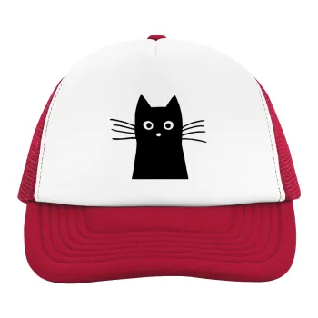 Black Cat, Children's Soft Trucker Hat with Red/White Mesh (POLYESTER, CHILDREN'S, ONE SIZE)