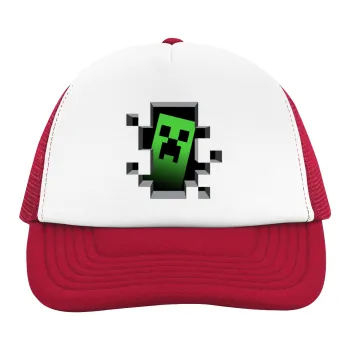 Minecraft creeper, Children's Soft Trucker Hat with Red/White Mesh (POLYESTER, CHILDREN'S, ONE SIZE)