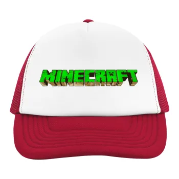 Minecraft logo green, Children's Soft Trucker Hat with Red/White Mesh (POLYESTER, CHILDREN'S, ONE SIZE)