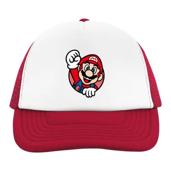 Super mario win, Children's Soft Trucker Hat with Red/White Mesh (POLYESTER, CHILDREN'S, ONE SIZE)