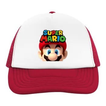 Super mario, Children's Soft Trucker Hat with Red/White Mesh (POLYESTER, CHILDREN'S, ONE SIZE)