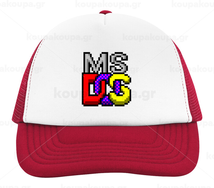 MsDos, Children's Soft Trucker Hat with Red/White Mesh (POLYESTER, CHILDREN'S, ONE SIZE)