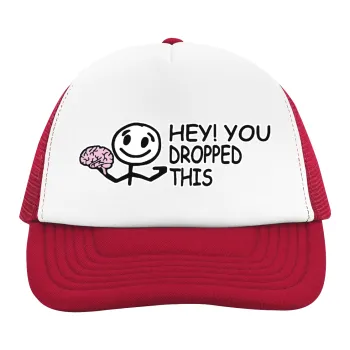 Hey! You dropped this, Children's Soft Trucker Hat with Red/White Mesh (POLYESTER, CHILDREN'S, ONE SIZE)