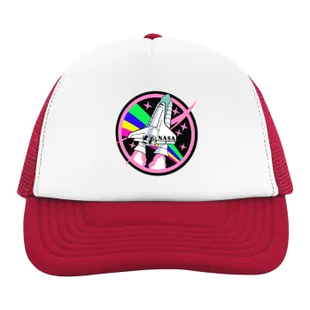 NASA pink, Children's Soft Trucker Hat with Red/White Mesh (POLYESTER, CHILDREN'S, ONE SIZE)