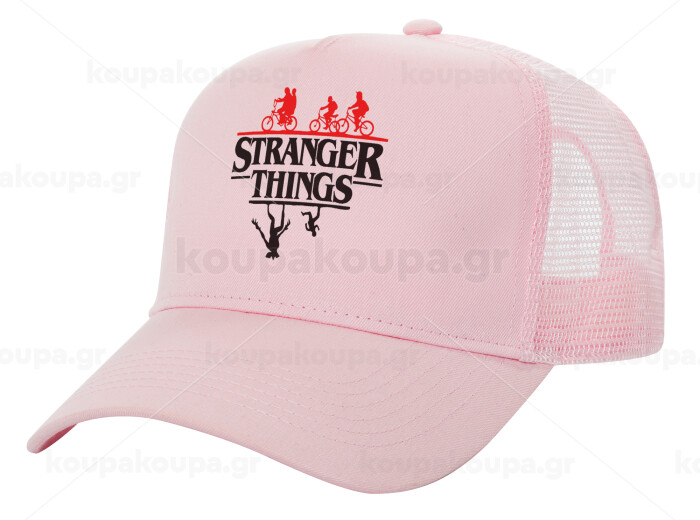 Stranger Things upside down, Structured Trucker Children's Hat, with Mesh, PINK (100% COTTON, CHILDREN'S, UNISEX, ONE SIZE)