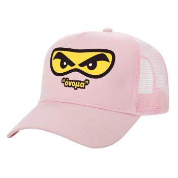 Ninja Eyes με όνομα, Structured Trucker Children's Hat, with Mesh, PINK (100% COTTON, CHILDREN'S, UNISEX, ONE SIZE)