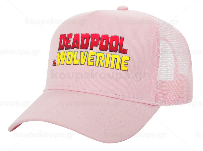 Superhero Deadpool Wolverine, Structured Trucker Children's Hat, with Mesh, PINK (100% COTTON, CHILDREN'S, UNISEX, ONE SIZE)